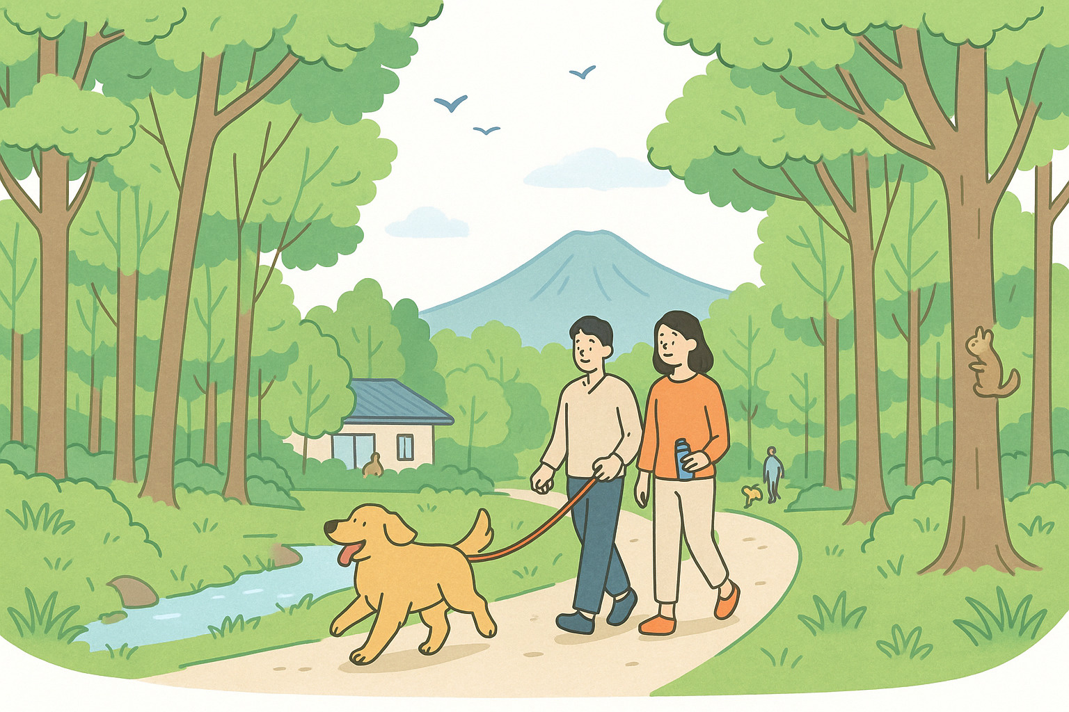 第二のポイントは、周辺の散歩環境です。物件の立地だけでなく、周辺に安全で快適な散歩コースがあるかを確認しましょう。車通りが少ない静かな道、森の中の遊歩道、公園など、愛犬が安心して歩ける環境が理想的です。