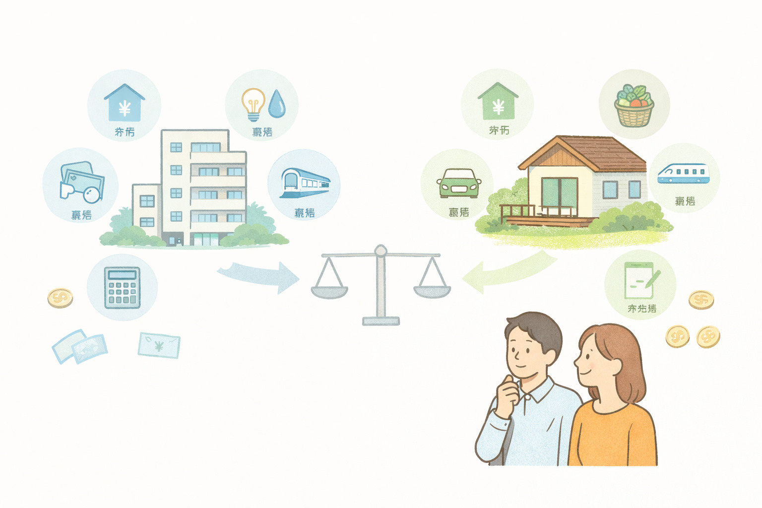 以下に、30代夫婦が二拠点生活を行う際の想定コストを比較してみましょう。※家族構成・ライフスタイルによって変動あり