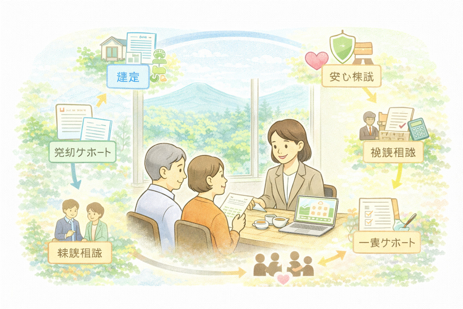 また、終活に関するご相談も承っております。「売却すべきか、生前贈与すべきか」「遺言書はどう書けばよいか」など、どんなご相談でもお気軽にお寄せください。