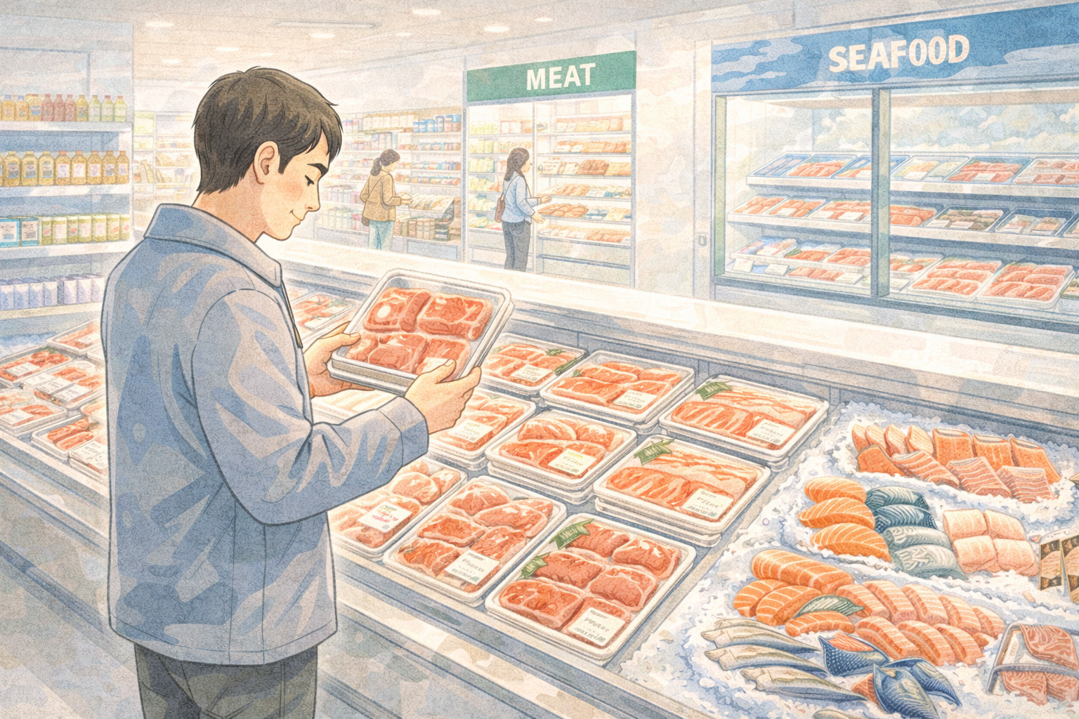 ・ 冷凍魚:冷凍のエビ、イカ、ホタテなども充実