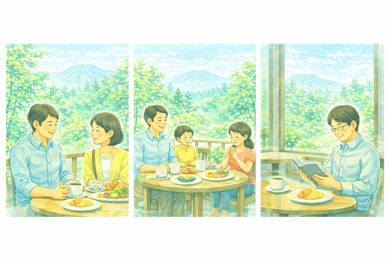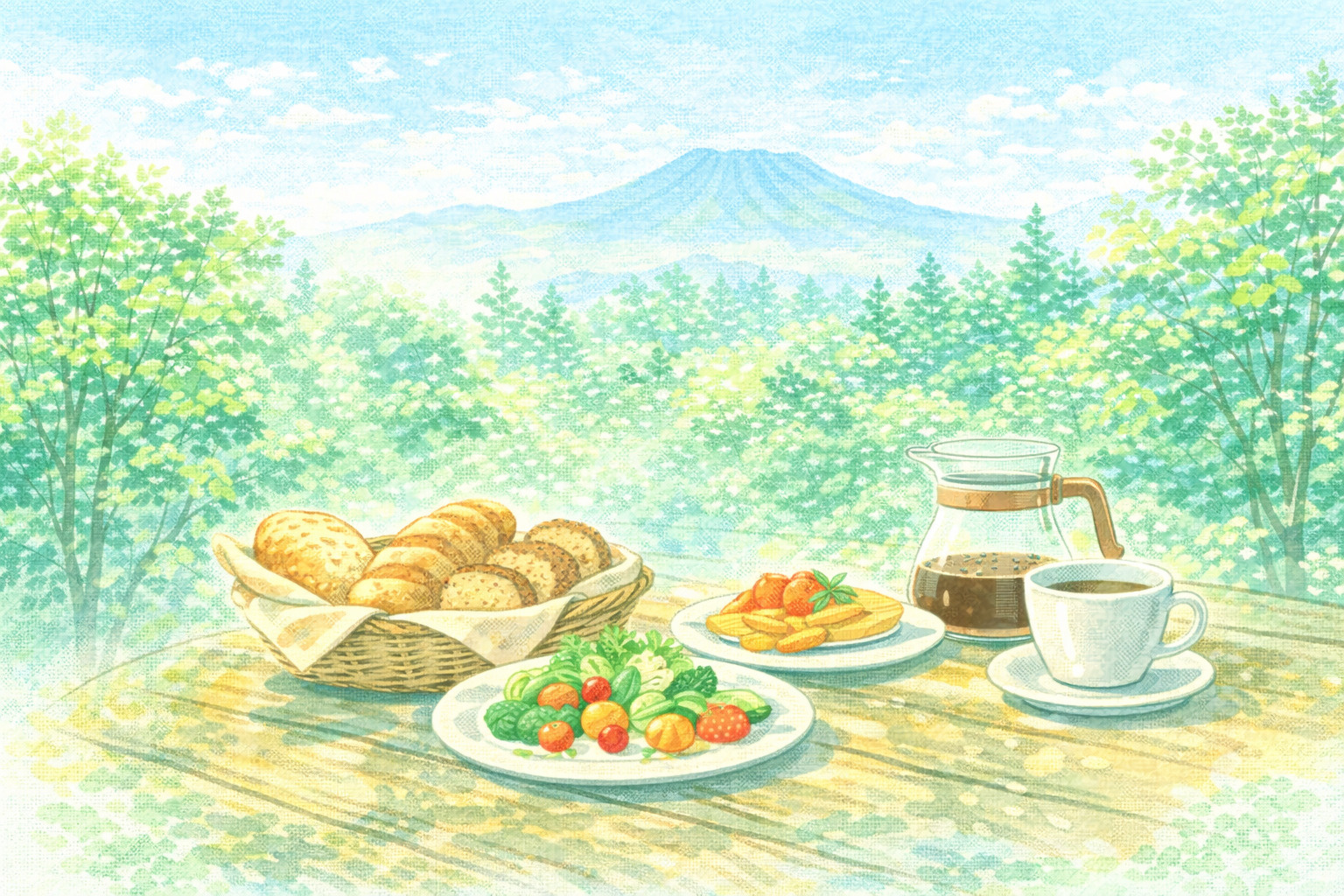 軽井沢の朝は、都会では味わえない特別な時間です。澄んだ高原の空気、木々の緑、鳥のさえずり——そんな環境の中でいただく朝食は、心身をリフレッシュさせてくれます。